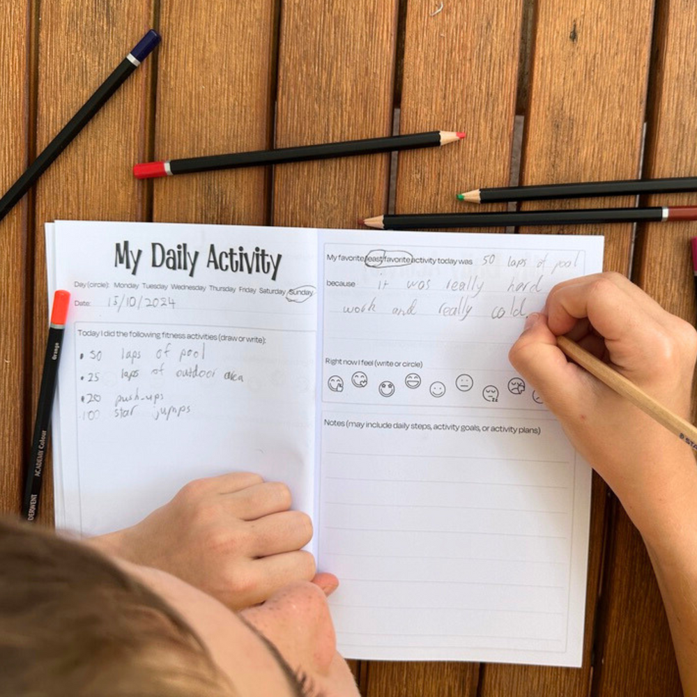 Give kids their own space to draw, write, and track healthy movement—without it feeling like homework. This bright, simple fitness journal helps children build motivation and healthy habits by reflecting on what they did, how it felt, and what they want to try next.